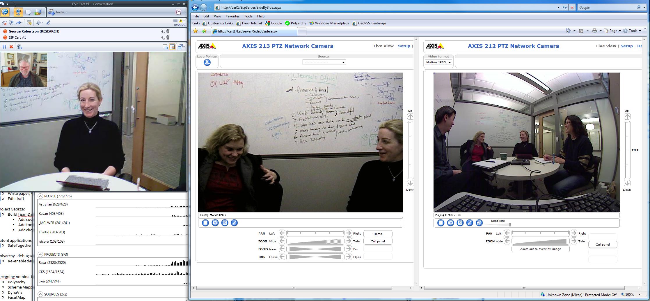 In a global work environment, we have many tools to help us stay in touch with our colleagues, the most prevalent being e-mail. But a great deal of important communication happens not over e-mail but in meetings and ad-hoc conversations. This is where being distributed, rather than co-located, puts team members at a disadvantage. Even in meetings, remote employees have trouble getting a word in — if a number of people are in a room, those on the phone are often overlooked. And as important as meetings are in getting things done, ad-hoc conversations are the number one way a group shares awareness and information. We all know how much easier it is to work with someone we can run into and talk to anytime.