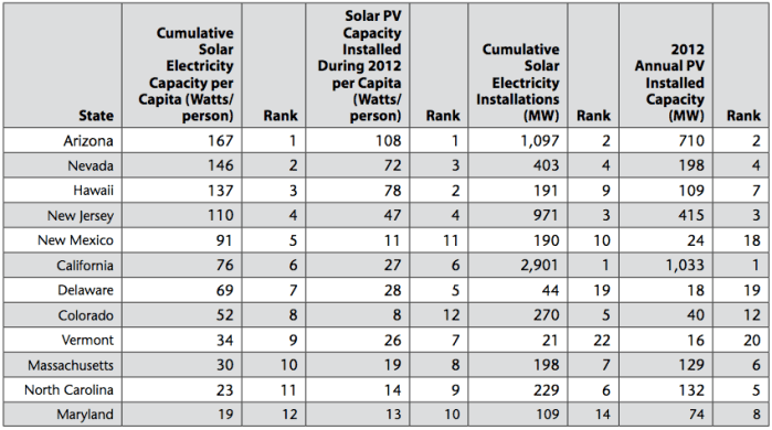 - Renewable portfolio standards (RPS): RPS policies require utilities to provide a certain amount of their power from renewable sources; some set specific targets for solar and other renewables. Robust RPS policies in not-so-sunny New Jersey and Massachusetts helped those states make the top 12 list. And it turns out that California’s aggressive RPS of 33% renewable energy by 2020 is not bankrupting the state, or its residents.